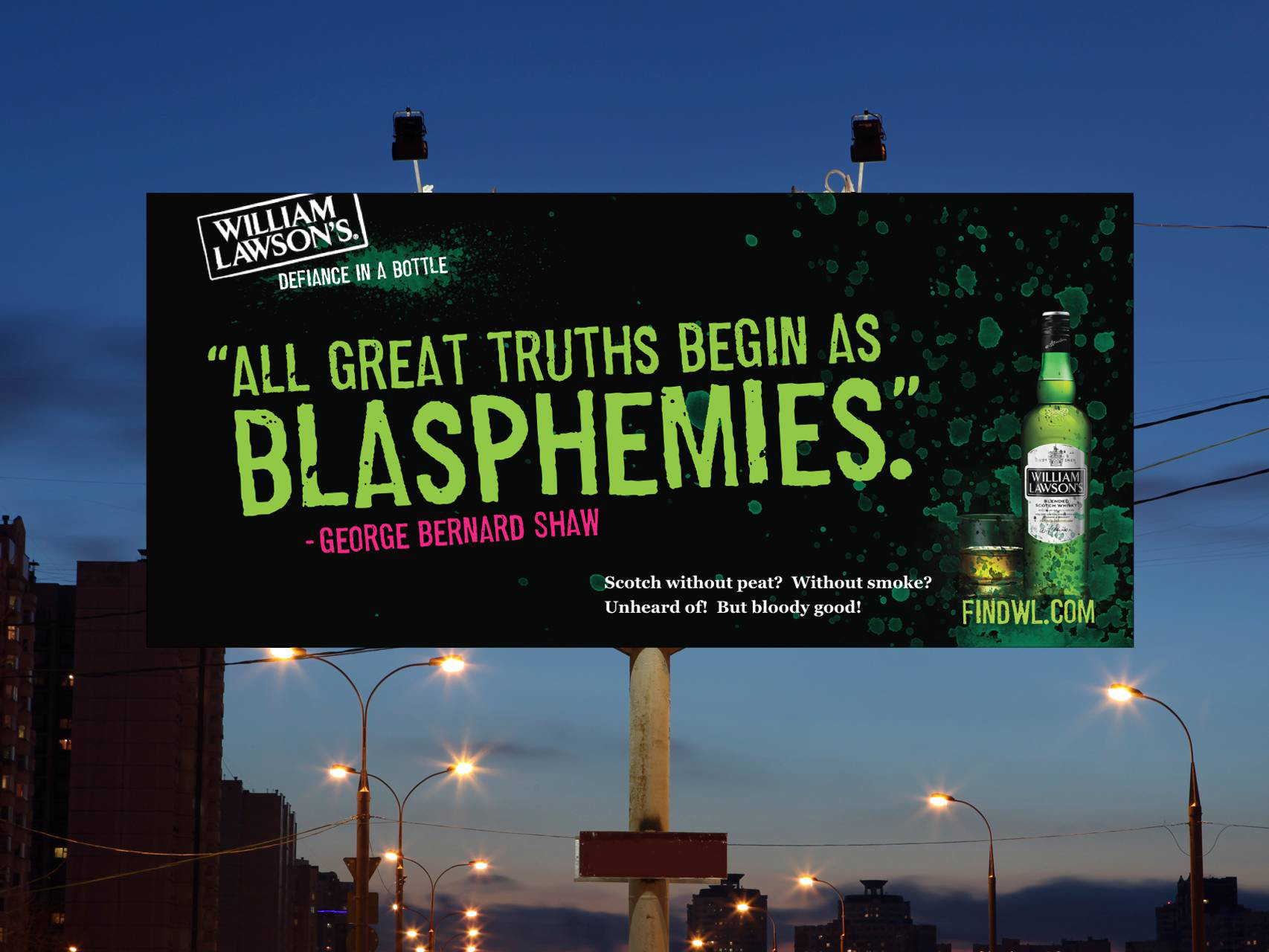 Creative for the campaign was based on the genuinely bold taste departure it offers scotch lovers. Using a simple tagline, “A Spirit Like No Other”, presented a chance to address both its unique taste and the attitudes of those who should try this new introduction into the market. Provocative headlines and equally provocative layouts made for instantly understandable and engaging customer interaction that invited all to Join the Scotch Rebellion!